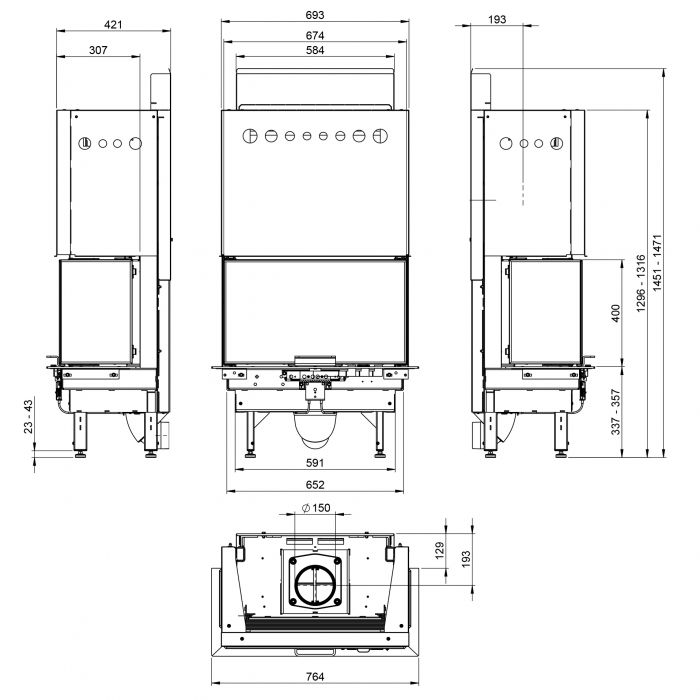 - Диаметр дымохода, (мм) 150