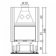 Корпус каминной топки выполнен из жаропрочной стали, колосники и патрубки из чугуна.