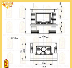 Облицовка из майолики ручной работы. Доступна в вариантах с банкеткой слева, с банкеткой справа или без банкетки, с декоративным дымоходом. Симметричная банкетка слева или справа.