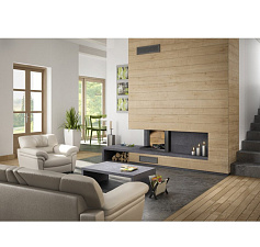 В топке имеется система длительного горения и система чистого стекла. Имеется возможность для подвода дополнительного воздуха из других помещений или улицы для процесса горения, что сводит к минимуму выжигание кислорода в помещении во время работы камина.