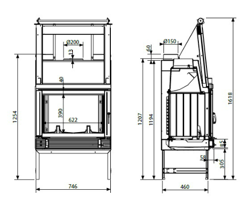 Система «чистое стекло» - технология, которая позволяет стеклу камина долгое время оставаться чистым и не коптиться. Также топка оснащена регулировкой подачи воздуха на горение и шиберной заслонкой с автоматическим открыванием(при открывании дверцы, шиберная заслонка открывается автоматически, данное преимущество позволяет максимально ограничить проникновение дымовых газов в комнату).