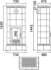 Цена указана за камин в стандартном исполнении (см. чертеж) из указанных материалов без топки.