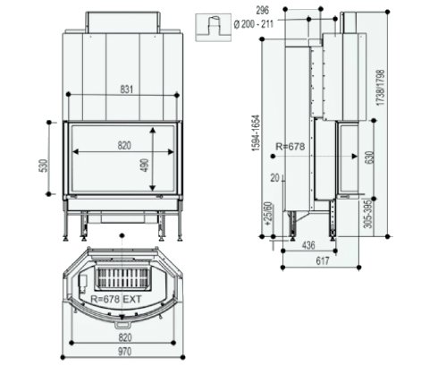 Система «чистое стекло» - технология, которая позволяет стеклу камина долгое время оставаться чистым и не коптиться. Также топка оснащена регулировкой подачи воздуха на горение и шиберной заслонкой с автоматическим открыванием(при открывании дверцы, шиберная заслонка открывается автоматически, данное преимущество позволяет максимально ограничить проникновение дымовых газов в комнату).