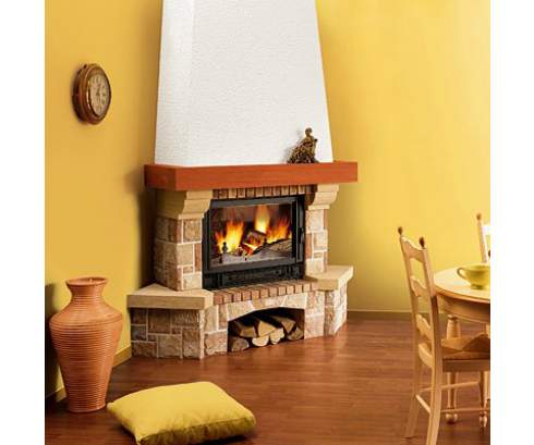 Эффектный угловой камин в стиле кантри будет незаменим с приближением холодов. Модель Parvelle выполнена из разноцветного бута и песчаника грубой обработки. Крупная верхняя балка сделана из натурального дерева Ироко. В нижней части камина расположена декоративная ниша, может использоваться для хранения дров.