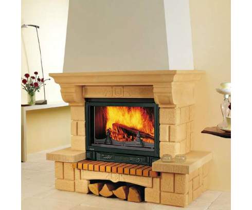 тильный камин в стиле кантри сочетает в себе некоторую грубость отделки с плавностью линий и нежностью классических декоративных элементов. Пристенная облицовка Sardane 76 Sand - модель, изготовленная из камня Эдельрок золотисто-песочного оттенка со стильными барельефами в стиле кантри.