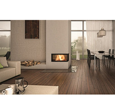 Топка Lateral 800 выполнена из легированной стали. Ширина очага 700 мм, глубина очага 367 мм. Высота видимой части пламени 465 мм. Очаг выложен кирпичными блоками со швами. Размер блока 110х220 мм. Подъемная ручка двери прямая 12 см.