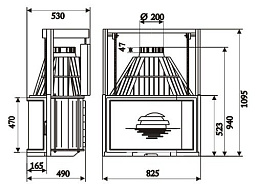 Дверь топки полностью поднимается вверх, тем самым не мешая обзору пламени. Для чистки стекла дверь открывается в бок. Дымоход контролируется шибером , регулирующим тягу.