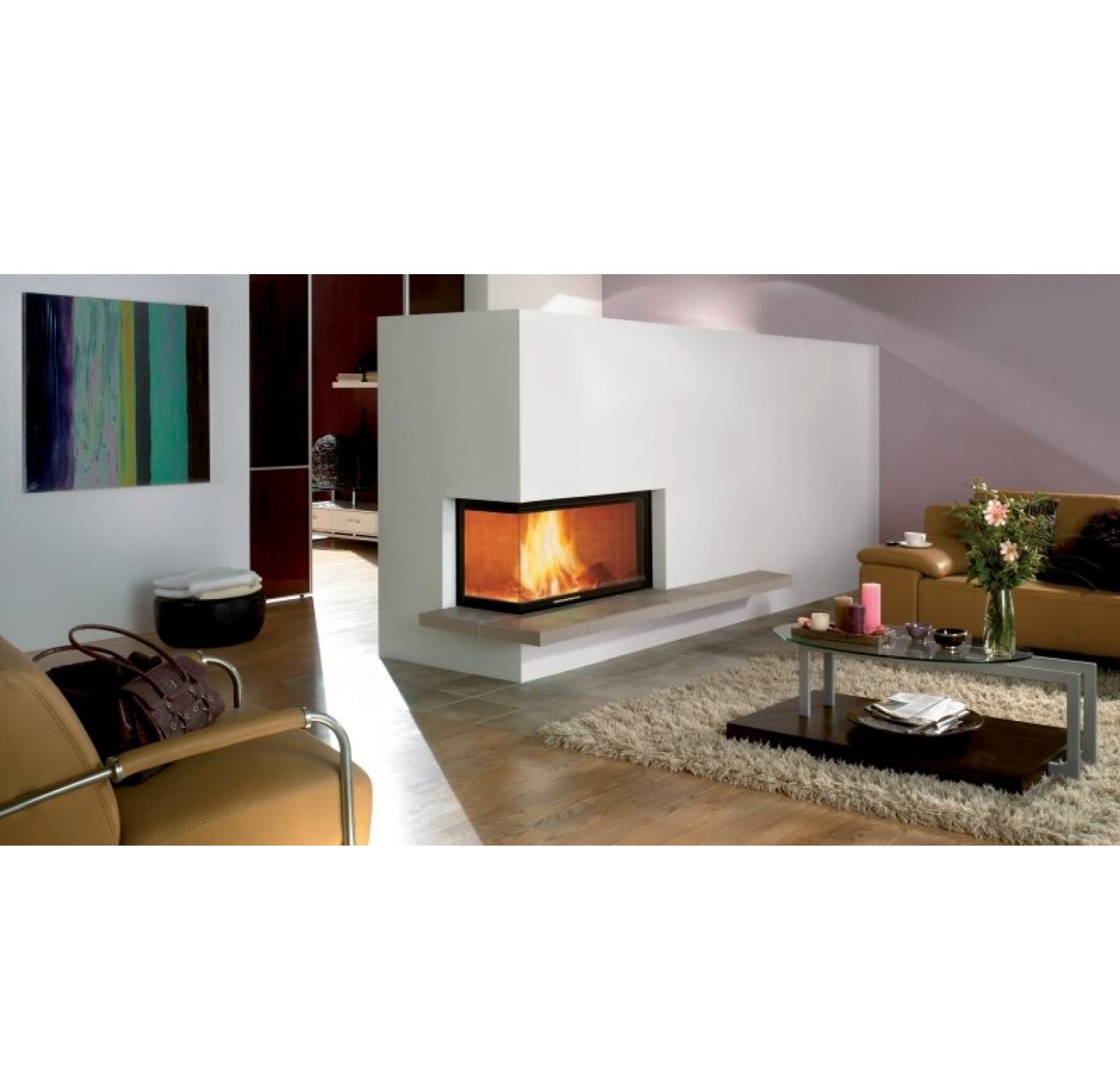 Отсутствие шиберной заслонки и повышенная герметичность топочной камеры гарантируют безопасность эксплуатации угловой топки Varia 2L 100h 4s.