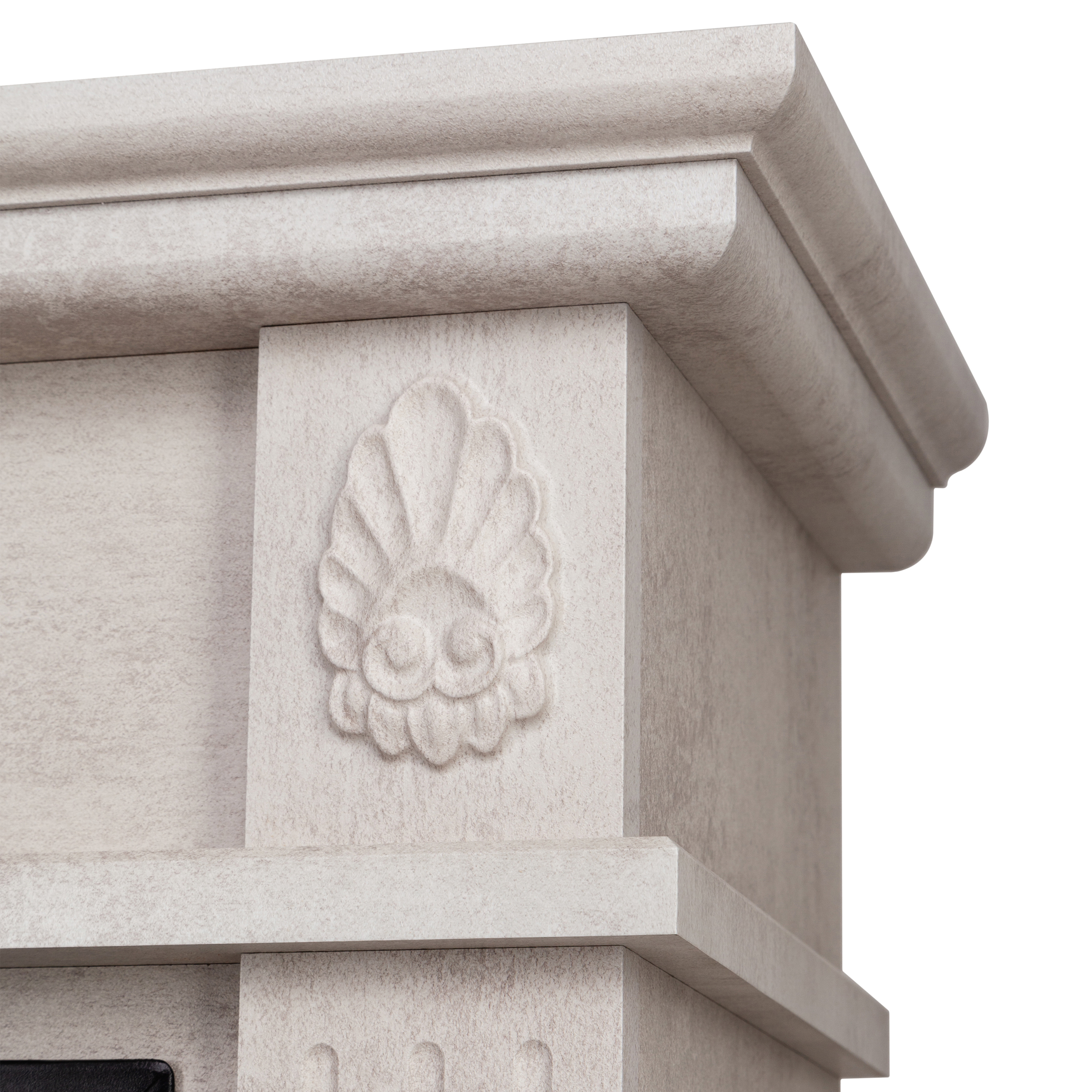 - Материал портала – полистоун (искусственный камень с имитацией мрамора). Обрамления из послистоуна открывают большие перспективы для творчества: их можно механически дорабатывать, поддаются шлифовке, окрашиванию. Полистоун – экологически чистый материал, не впитывает влагу и запах, не восприимчив к моющим средствам, долговечен.