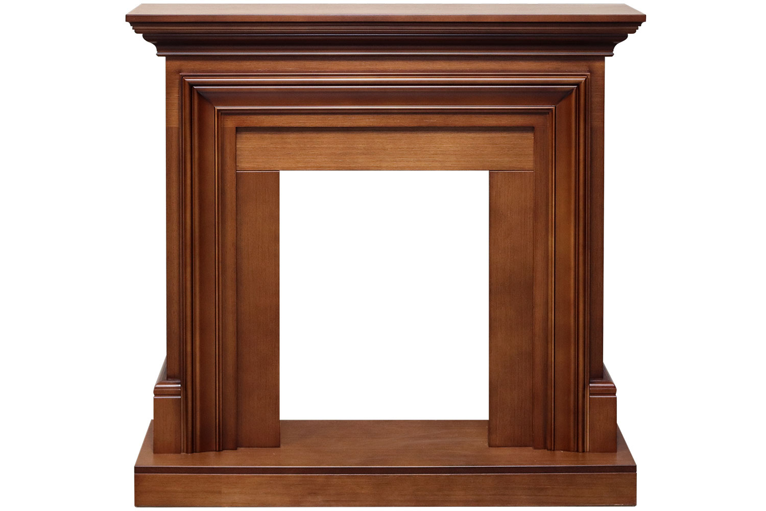 Это деревянный портал. Зона топки декорирована арками с четкими, прямыми линиями.