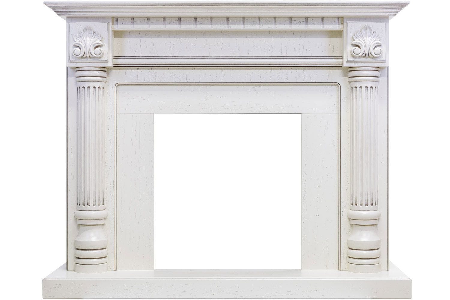 Высокий постамент, на котором расположен портал, выгодно возвышает камин, делая его основной частью любого интерьера. Изображения византийских колонн, увенчанных импостом с орнаментом, визуально поддерживают тонкую столешницу, которая завершает каминный ансамбль.