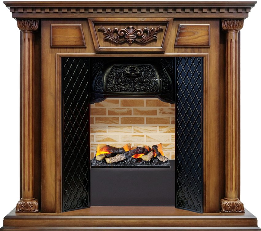 Каминокомплект Dimplex Olympia доступен в нескольких цветовых решениях. Колонны с резным рисунком и витиеватые вставки над очагом выполнены из массива дерева. Этот портал станет лучшим подарком для любителей мебели «с историей» и сторонников классической архитектуры.