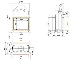- Размеры очага ШхГхВ, (мм) 1260x140x430
