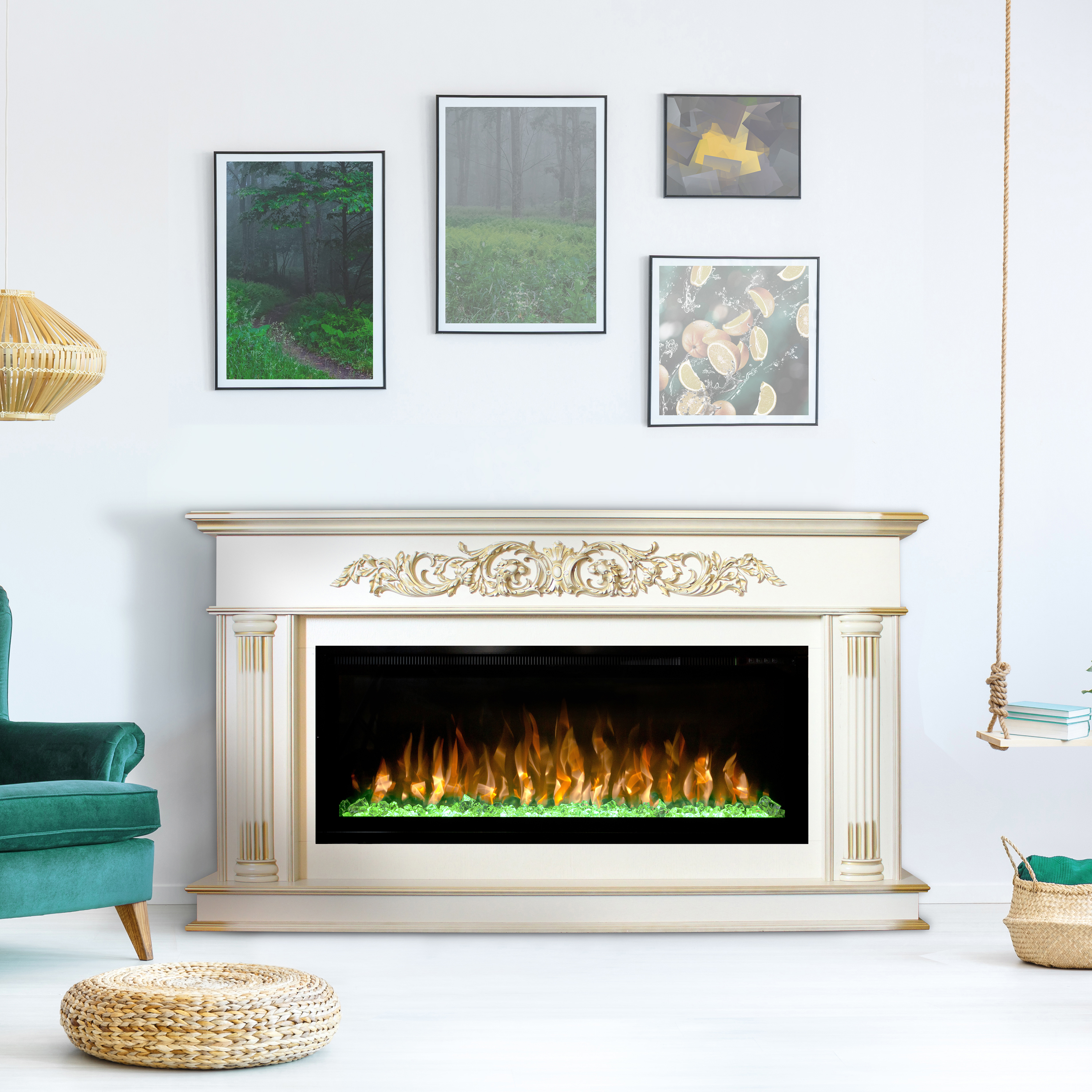 В комплект с линейным порталом Prince входит широкий электрический камин Saphir 42. Такой очаг с мощностью 1.5 кВт будет отлично служить дополнительным источником тепла для небольших помещений. Очаг имеет встроенную функцию регулировки яркости пламени и пульт дистанционного управления. Дополнительный уют придаст приятное потрескивание дров, которое создается благодаря встроенной функции звукового сопровождения.