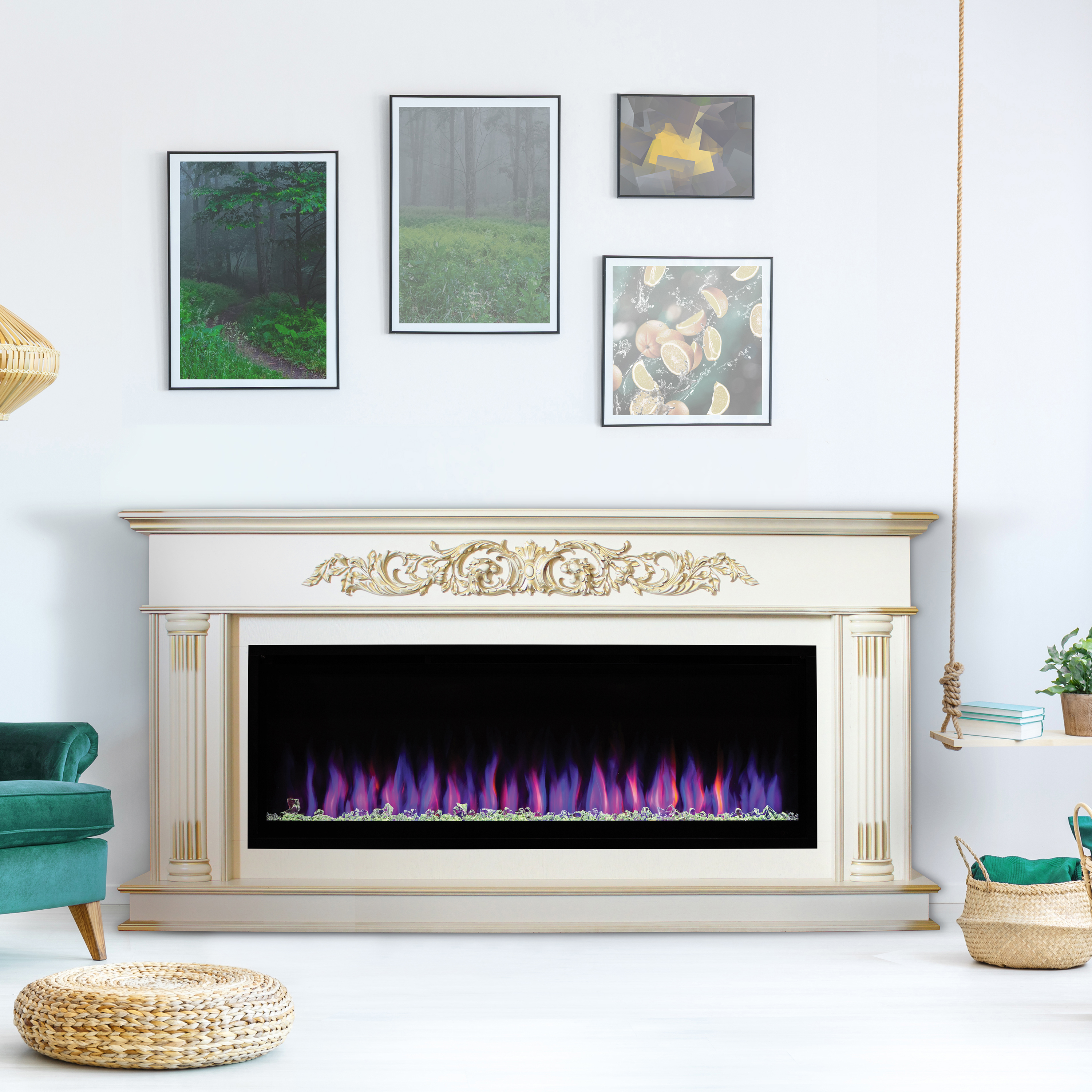 Такой каминокомплект создан специально, чтобы придать вашему помещению неповторимую атмосферу уюта и комфорта. Элегантный предмет интерьера выполнен в классическом стиле, который отлично дополнит любое дизайнерское решение. А длинная линия огня притягивает к себе взгляды гостей и располагает к долгим душевным разговорам в окружении самых близких.