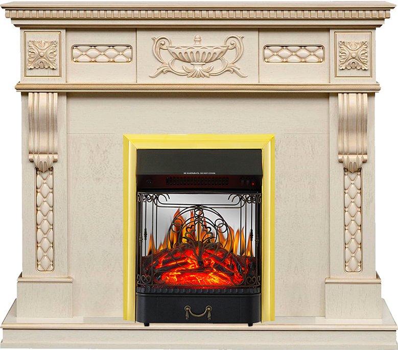 Каминокомплект Royal Flame Corsica с очагом Majestic FX M Brass слоновая кость с патиной