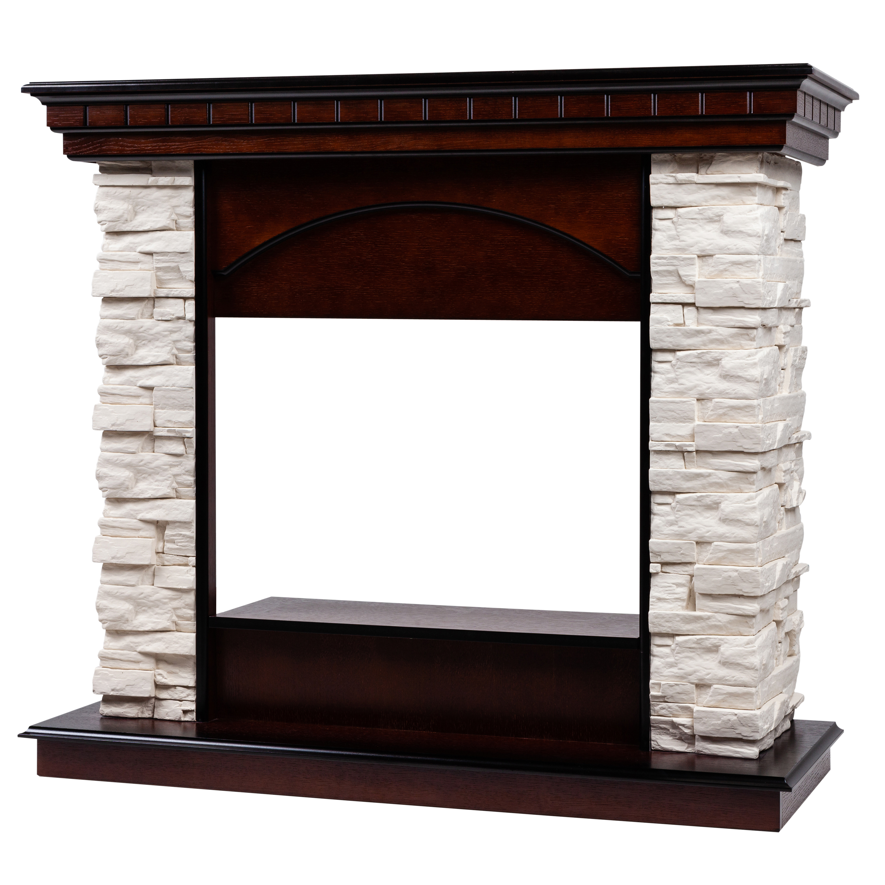 - Портал выполнен из шпонированного МДФ цвета античный дуб и искусственного белого камня.