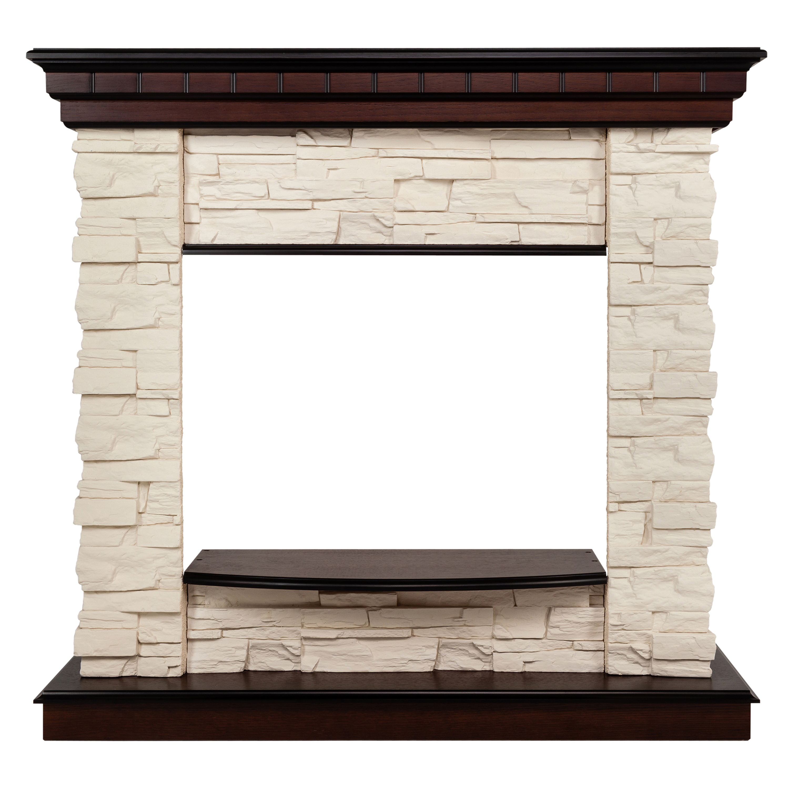 - Портал выполнен из шпонированного МДФ цвета античный дуб и искусственного белого камня.