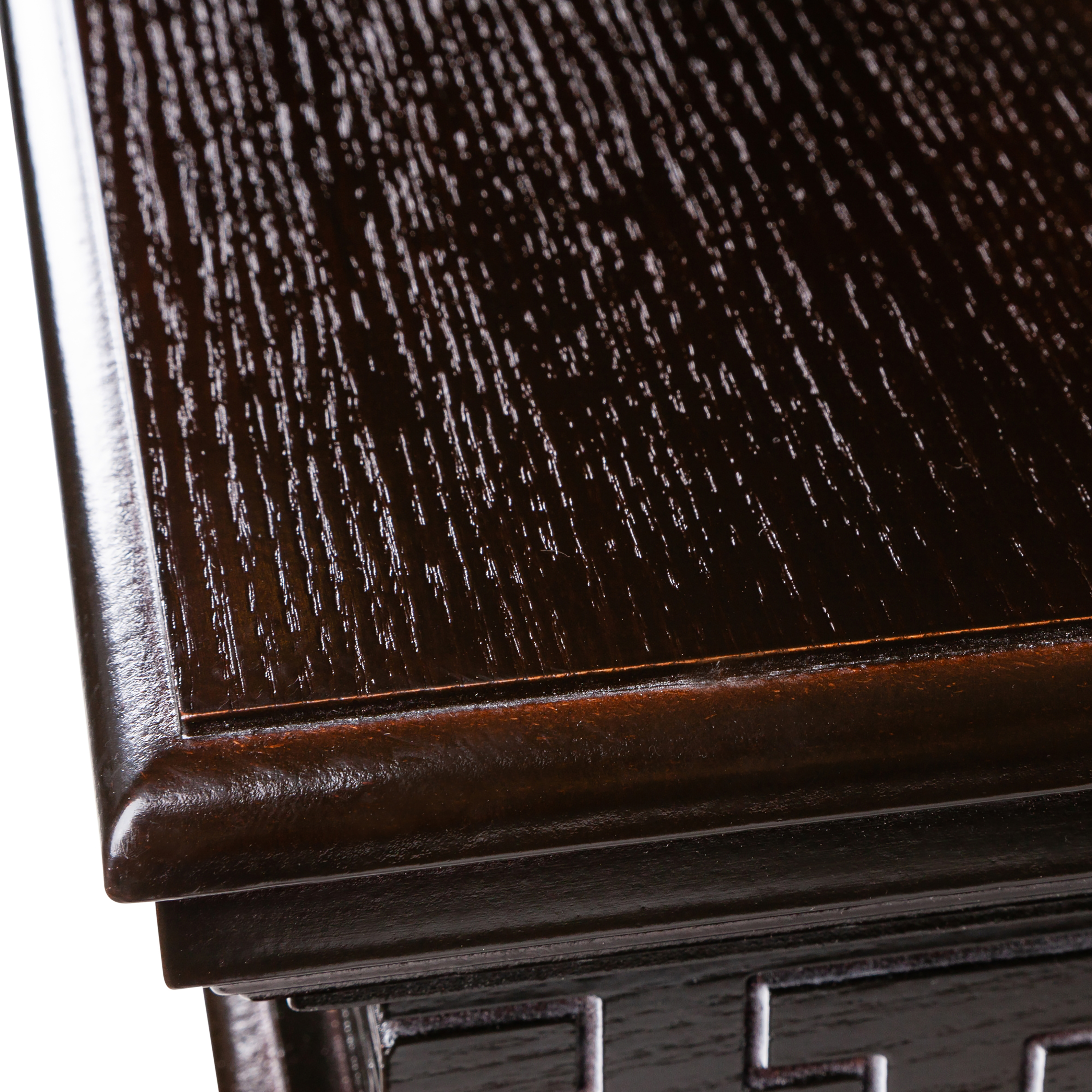 - Разработан из качественного шпонированного МДФ цвета античный дуб с отделкой белым искусственным камнем.