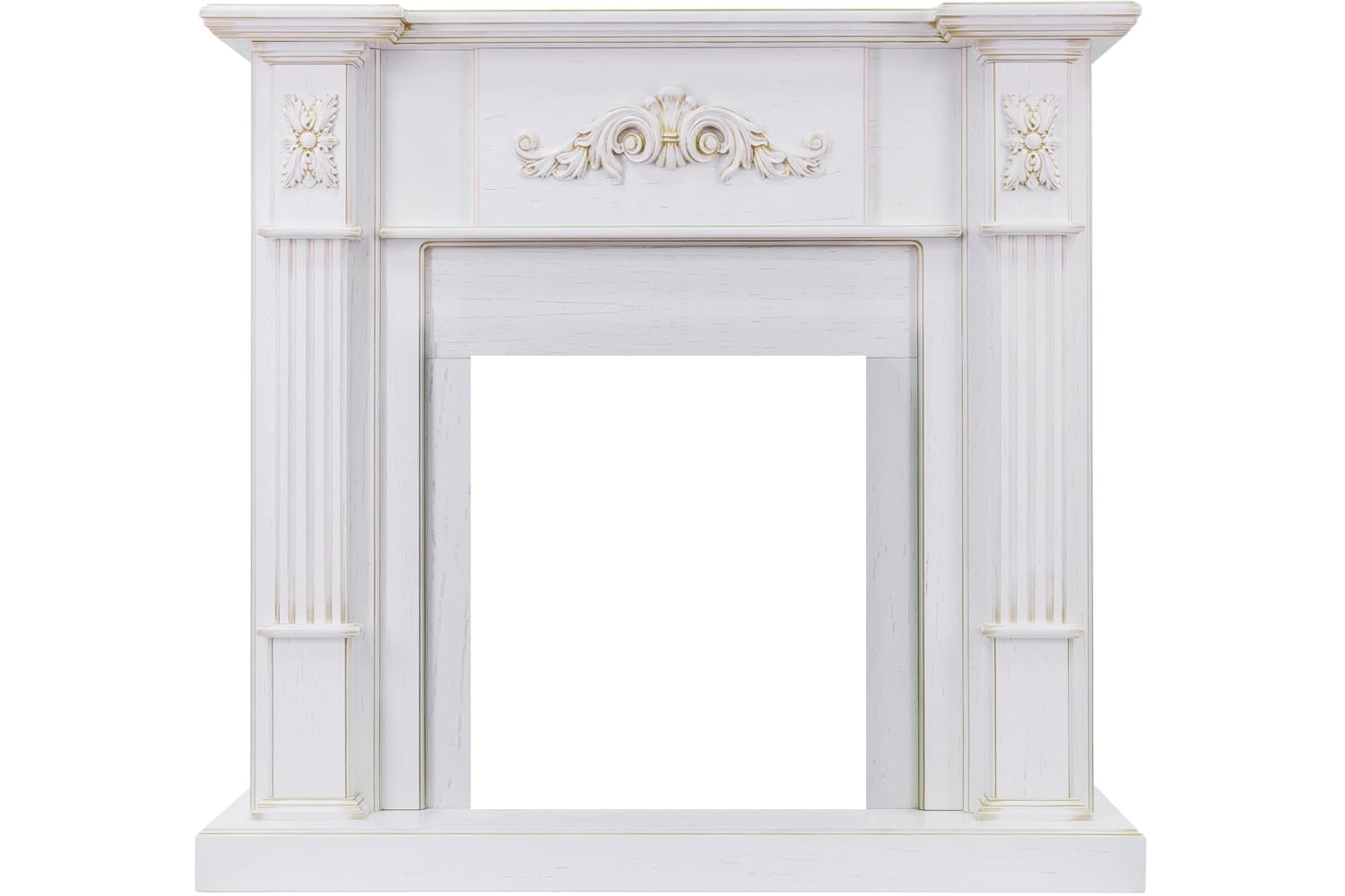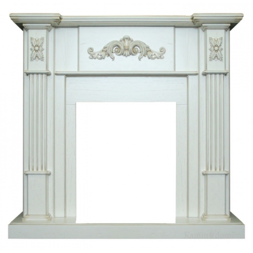 Портал Martin – изысканная модель в цвете белый дуб с патиной и золотом. Строгий классический стиль разбавлен резным барельефом, размещенном на фронтоне, и изящными колоннами, обрамляющими зону очага. Универсальность дизайна портала позволяет вписать его практически в любой интерьер.