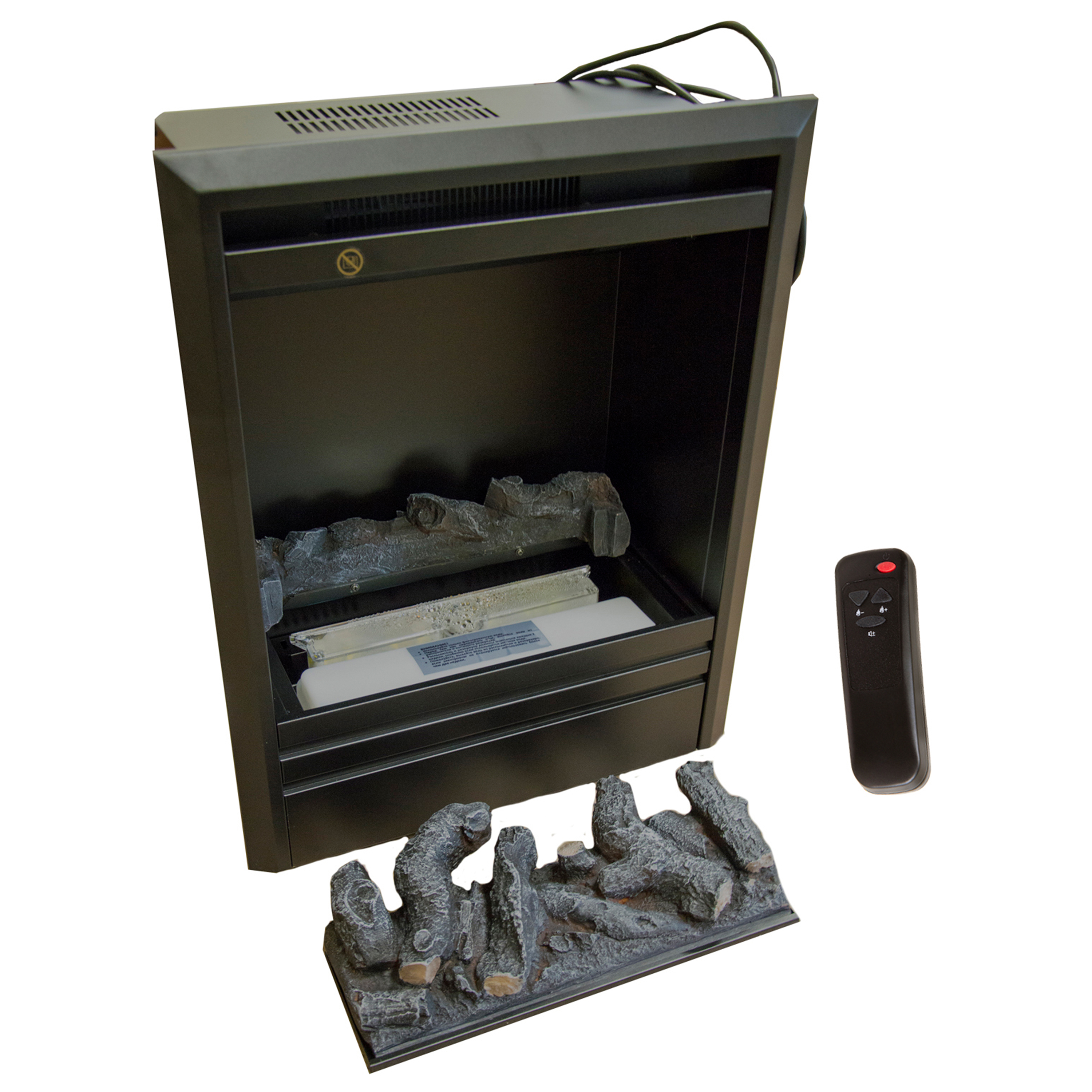 Очаг управляется дистанционно с пульта. Управление продублировано на панели очага. Обеспечивает дополнительное увлажнение воздуха.