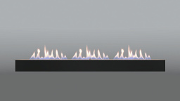 Встраиваемый биокамин с широкой серой рамкой и стемалитом. Топливный блок с линией огня 1000 мм.